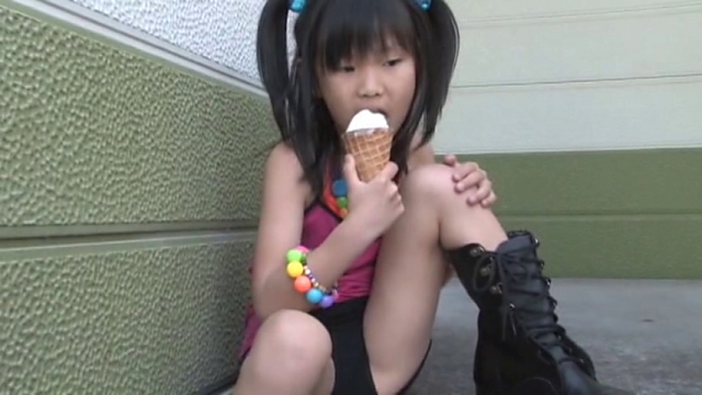 最後のシーンでは、ピンクに高露出衣装の姿でアイスをペロペロと舐める可愛い こももちゃん。