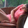 恥ずかしそうにしながらもピンク色の極小水着姿に変身!