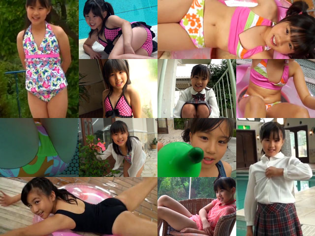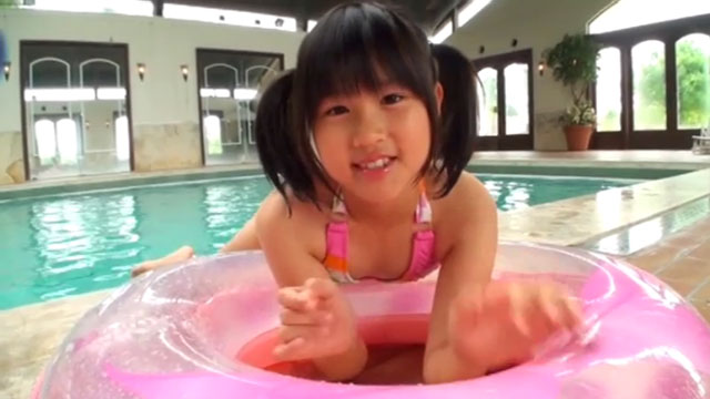 お尻をすっぽり浮き輪に入れてプールで手足をバタバタさせてはしゃぐここなちゃんやちょっぴり意地悪な表情をしてカメラに向かって水をかけちゃうここなちゃんに萌えキュンです♡