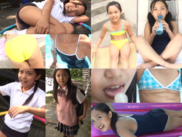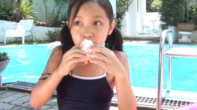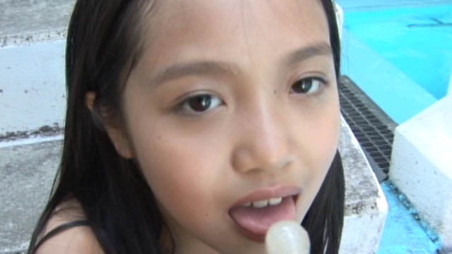 最後には水色のビキニで飴をぺろぺろしたり、プールサイドでポージングするあきこちゃんを激写!